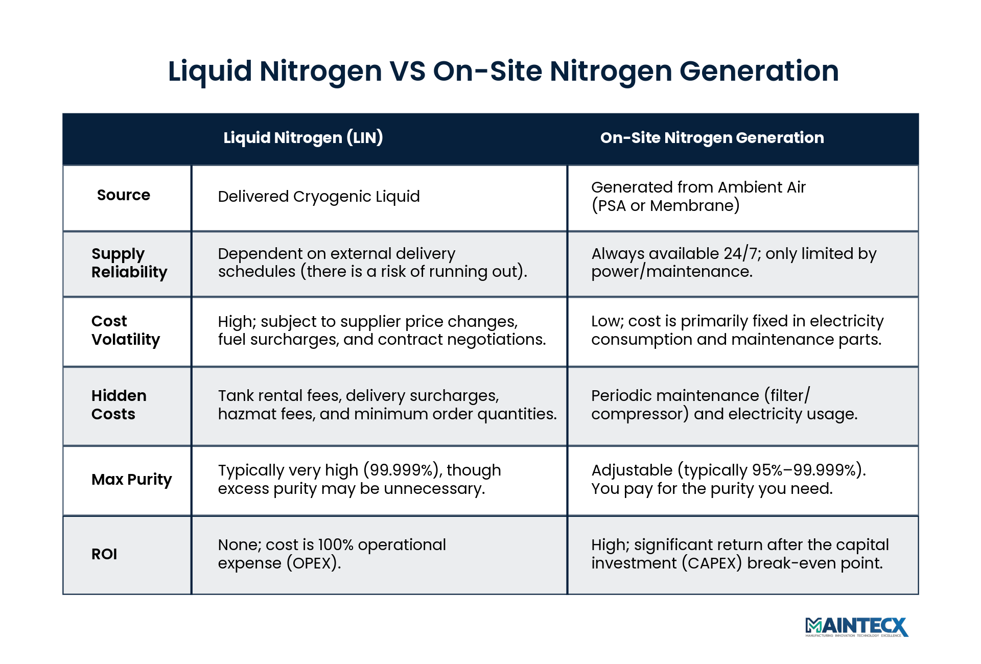Side-by-Side Comparison: Liquid Nitrogen vs. On-Site Generation